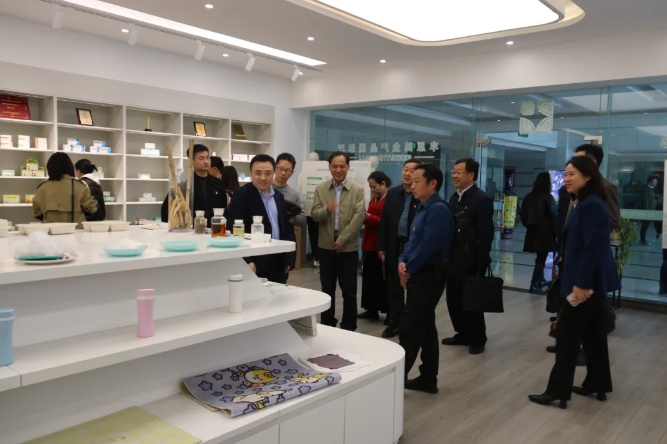 最后,与会人员参观了丰原药业生物低碳生活体验馆(聚乳酸产品展示厅)。展厅内陈列的生物基聚乳酸制品吸引了大家驻足关注。丰原药业办公室主任程兆明向大家介绍:聚乳酸是以玉米、秸秆等生物可再生资源为原料,通过生物技术加工而成,具有环保、无毒、可降解的特性,被认为是未来最有希望替代石油基普通塑料和石油基普通化纤的生物基新材料。丰原集团现已掌握聚乳酸全产业链技术,目前正在实施推进秸秆制糖联产黄腐酸高效有机肥,计划打造世界级生物基制造业中心,实现生物新材料,万物秸秆造。